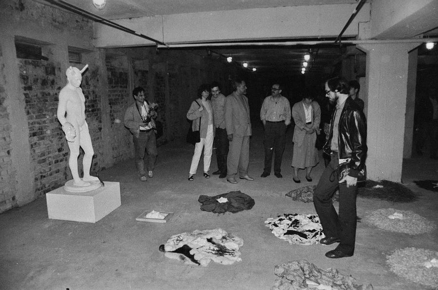 Wystawa „Lochy Manhattanu, czyli sztuka innych mediów”, garaże, Łódź, 1989